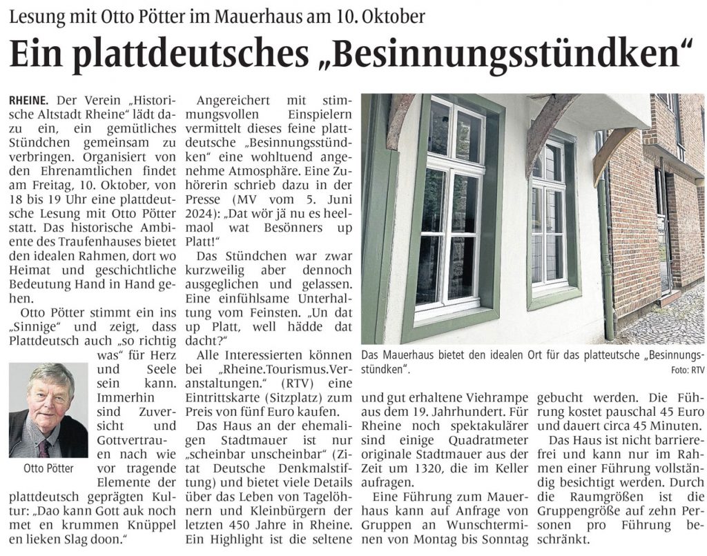 Nu was de in de Marktschänke aower en nee’en Pächter drup. För so wat wör et an sick noch en jungen Kerl. Doch et schinn, he möök sick guet. Bloß dat met dat Anschriewen, dat woll he nich mehr. Dao möök he en End van. He meinde, dat pöss nich mehr recht in de moderne Tiet. Herrjeh, nu all wier so nee Marotten. Jopp pöss dat niemodske Gedoo ganz un gar nich! As he dao bi sien Gedeck up en Hocker an de Theke satt, woll he dat met den nee’en Kröger auk glieks es in Ruh beküeren. Wat an de Pöste to setten (anschreiben lassen) wäre jä nich so, dat man de nich bi Betahlen dai. Dat doch nich! Ah wat. Doch Dag för Dag immer so klein-klein, wäre dat nich Fimmelanterie? Dat wäre eenmaol de Wiäk för beide doch wiet praktisker.